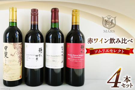 ワイン 赤 飲み比べ 4本 セット ソムリエセレクト 詰め合わせ [本坊酒造 マルス穂坂ワイナリー 山梨県 韮崎市 20743505]