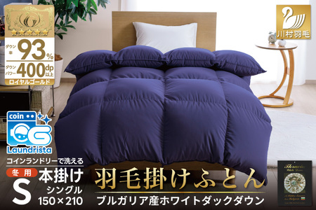 【冬用】洗える 羽毛布団 シングル 本掛け ネイビー 無地 |[川村羽毛 山梨県 韮崎市 20742895]
