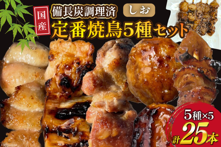 国産 焼き鳥 備長炭 調理済 人気 串5種×5袋セット (しお) 冷凍 小分け [山本食肉有限会社 山梨県 韮崎市 20742987]