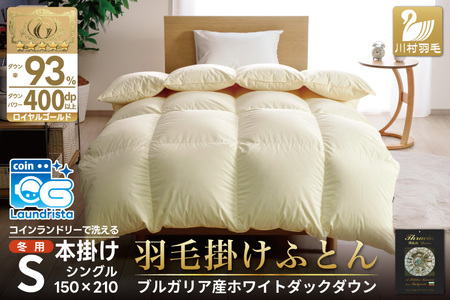 ■内容 サイズ:シングル 150×210cm 1枚 ※収納用ソフトケース1枚付属 ■素材 色:無地 アイボリー 側生地:TTCブロード起毛 ポリエステル85% 綿15% 縫製:立体キルト(5×6マス) 詰め物:ブルガリア産ホワイトダックダウン93%・スモールフェザー7% 羽毛充填量:0.4kg ダウンパワー:400dp以上 ラベル:ロイヤルゴールドラベル ※カバーを止めるループは8箇所 ■関連キーワード:羽毛布団 掛け布団 シングル ブルガリア産 ホワイトダックダウン 93% 0.4kg 400dp 5つ星 ロイヤルゴールドラベル 肌掛け 寝具 布団 国産 日本製 春用 夏用 洗える 洗濯可 コインランドリー対応 ダウンケット 羽毛 掛布団 ふとん 抗菌防臭 無地 アイボリー