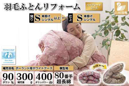 リフレッシュ 羽毛布団 シングル リフォーム ハイグレード【 80超長綿 赤 柄おまかせ】|[川村羽毛 山梨県 韮崎市 20743591]
