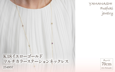 K18イエローゴールド マルチカラーステーションネックレス 管理番号254957 ×1本 218-032