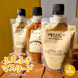 商品番号084-001 ●マスタード(プレーン、ぴりまるけ家のマスタード、お楽しみマスタード)パウチ入りで100g ●申込期日:通年 ●事業者:ぴりまるけ