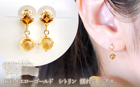 【ジュエリー】K10 イエローゴールド シトリン 揺れる ピアス 保証書付 SR-2012 242-003-c