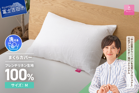 【甲州羽毛ふとん】フレンチリネン ピロケース Mサイズ ホワイト寝具 枕カバー