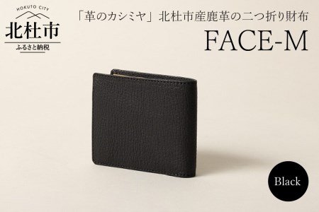FACE-M (革のカシミヤ 北杜市産鹿革の二つ折り財布)BK(ブラック×キャメル)