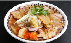 肉!肉!!肉!!! 肩ロース・バラ巻き・豚トロ チャーシューの三つ巴。丼を埋め尽くすチャーシューが見る者を圧倒する。 天然醸造ならではの深みある醤油ダレに魚介系不使用の大量の豚肉でとったキレのある透き通ったスープ。 さらに生姜の芳醇な薫りが食欲をそそる渾身の一杯。肩ロース・バラ巻き・豚トロ、3...View More »