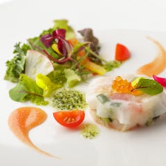 前菜 *香草の香りサーモンマリネ クレープ添え *スペイン産プロシュート *帆立貝のムースビスク風味 魚料理 天然鮮魚と天使の海老 又 活オマール海老ナージユソース(+3000円) 肉料理 黒毛和牛A5 サーロイン クリスマスデザート ご予約時に魚料理をお選びいただいております。View More »