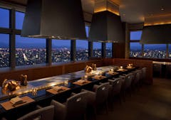 最上階からの絶景と共にお過ごしいただける天空の鉄板焼レストラン。 地元九州の上質なお肉や新鮮な魚介類、彩り鮮やかな旬の野菜をご堪能ください。View More »