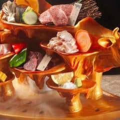 九州グランドチャンピオン3年連続制覇など、数々の賞を受賞している安楽畜産 そこで育てられたA4ランク以上の宮崎牛「安楽牛」を一等外で仕入れてご提供! ◆SNSで話題沸騰!味も見た目も大満足な逸品 ・煌びやかな『金牛セット』は希少部位を一度に楽しめる! ・豪華な見た目の『肉ケーキ』で特別な日のお...View More »