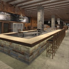 店内は、清潔感のあるウッド調のデザインでお一人さま、少人数用カウンター席のほか、複数人でのパーティーにも対応可能なテーブル席や個室を用意。View More »
