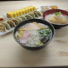 スーパーの奥の一角が食堂になっている《とさを商店》。 さっぱりとした和風だしが美味しい、赤岡のソウルフード「ちりめんちゅうにち」や、 香南産のニラと鶏肉をたっぷりと使用した手作りの「香南ぎょうざ」など、 地元にまつわる料理でおもてなしいたします。 また新赤岡名物の呼び声も高い、素揚げしたおむす...View More »