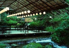 臨場感あふれる川床で絶品会席料理を愉しみながら、情緒豊かな時間をお過ごしいただけます。どのお席からも川に足をつけていただけます。View More »