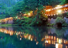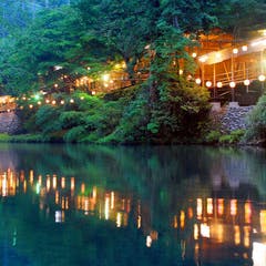 もみじに囲まれた静かな所。専用つり橋を渡ると、そこは閑静な民芸調の宿。落ち着いた館内で日頃の喧騒を忘れごゆっくりとお過ごしいただけます。View More »