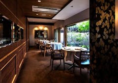 池庭「積翠園」の四季を水面に映す池のほとりにたたずむ「楓樹」は、伝統的な数寄屋造りの建築様式を取り入れた雅なラウンジ。View More »