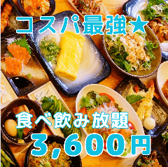 ■〔薦〕イチオシ ・【宮崎県産】金太郎ぶり使用 ぶり刺し ・バイヤーイチ押し!【長崎県産】炙り〆鯖刺し ・お造り6種盛り ■お料理もセットでお得!2時間飲み放題付きコース ≪オススメ≫ ・牡蠣と鮟鱇の特選醤油鍋と刺身4種盛りの付いた満足コース【全8品】5,000円 ≪人気コース≫ ・北海道産秋...View More »