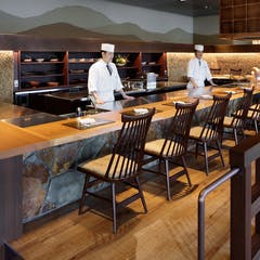 琵琶湖をのぞむカウンター席。旨みタップリの和牛や近江牛、新鮮な魚介類・野菜を熟練のスタッフがカウンター越しに丁寧に焼き上げます。View More »