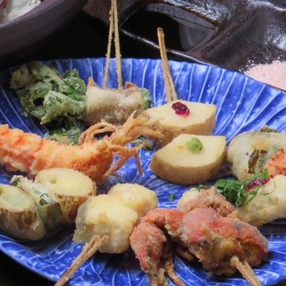 商店街の中にありながら二階に店を構えているため、落ち着いて過ごせる【創けん】 特にオススメなのは『海老の肉巻』で、海老と肉の贅沢なコンビネーションが楽しめます! また、肉と野菜を重ねた『ミルフィーユ鍋』は、醤油味とチゲ味から選べて人気! 《宴会・飲み会コース》 ・人気焼鳥4種など全8品『ちょい...View More »
