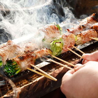 ■炭火で香ばしく焼き上げた人気の焼き鳥が16種以上食べ放題で楽しめる贅沢コース! 炭火でじっくりと焼き上げた香ばしい焼き鳥が、塩・タレの味わいで全16種以上食べ放題! もも、ねぎま、皮、砂肝など定番から、ししとうや豚バラなど変わり種まで豊富にご用意。 ■女性にも大人気!彩り鮮やかな野菜巻き串が...View More »