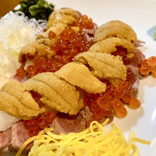 【神田駅 徒歩1分・席数120席】 名物 ①〜最後の直線に全てを賭けろ〜直線ユッケ寿司 直径40cm越えのインパクト大SNS映え ②〜たった一口の贅沢〜幸せとろユッケ 1日限定10食!キャビアと金箔で彩る 落ち着いた和の個室空間は2名様~団体様まで大人数の宴会には貸切対応も♪ ※繁忙期全コー...View More »
