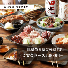 和モダンな店内は2名様~最大80名様まで貸切宴会が可能。 完全個室も完備。ご宴会、接待や会食にも◎ 地鶏料理ををメインに、新鮮な海鮮・魚介類・農家直送の採れたて野菜など 【2時間飲み放題付】炭火焼鳥・焼き餃子など全14品【3480円】 【3時間飲み放題付】炭火焼鳥食べ放題&野菜巻き串など全1...View More »