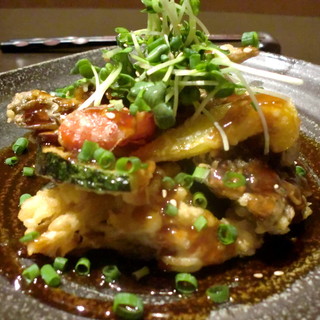 えび・カニ爪・ホタテ等魚貝類。グリーンアスパラ・しめじ・マッシュルームチーズ等季節の野菜。豚ひれ・ササミのしそ巻き等肉類。ちょっと変わった人気のメニューは、パン・バナナ・トマト・カマンベールチーズ・納豆etc…。おまかせコースは本数が決まっていないので、お客様のお好きな所でストップをかけて下さ...View More »