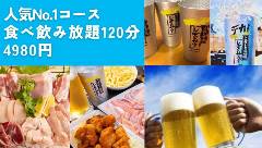 ★90品オーダー式食べ放題+2時間飲み放題付3.980円(税込 ) ☆90品オーダー式食べ放題+2.5時間飲み放題付4.498円(税込) ★90品オーダー式食べ放題+3時間飲み放題付4.998円(税込 ) ☆時間無制限飲み放題+料理時間無制限食べ放題 6.380円(税込) ★30品飲み放題 2...View More »