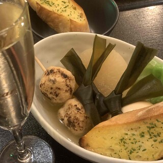 ★★★☆☆3.08 ■深夜でも気軽に立ち寄れる落ち着いた店内◎多彩なおでんと共にワインやガーリックトーストを堪能 ■予算(夜):¥3,000~¥3,999View More »