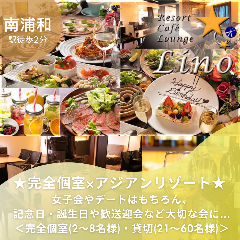 <JR南浦和駅東口より徒歩2分> 昼は石焼チーズリゾットを始め、パスタ、ご飯ものも充実のランチ! メイン料理にプラス前菜、デザート、二時間飲み放題ランチコースがお得☆ 夜はゆったり空間でおいしい料理とお酒をお楽しみください♪ 大満足コースメニュー有り!! Lino自慢の自家製デザートは店内手作...View More »