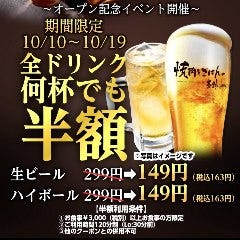 〜オープン記念イベント開催〜 期間限定:10/10~10/19 全ドリンク何杯でも半額 生ビール 299円→149円(税抜)/163円(税込) ハイボール 299円→149円(税抜)/163円(税込) ウーロンハイ 390円→195円(税抜)/214円(税込) 果肉レモンサワー 490円→24...View More »
