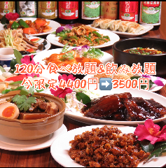 【豪華食材を楽しむ宴会コース】 フカヒレにアワビ、海老チリも『贅沢コース』<全10品>3,680円(税抜) 平日限定!人気の焼き餃子、フカヒレ入りスープなど<全10品>に2.5時間飲み放題付4000円(税別) フカヒレにアワビ、大海老チリ!『贅沢飲み放題コース』<全10品>2・5時間飲み放題付...View More »