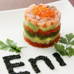― 明るくお洒落な空間で魚卵&極上ワインを堪能 ― ◆2時間飲み放題付コース ・Eniスペシャルコース6000円・エビ、カニ、魚卵堪能コース5000円・魚卵満足コース4000円 ■テレビで紹介!自慢のメニュー ○<看板料理>魚卵屋さんの本気のミルフィーユ …イクラ・トビッコ・サーモン・アボカド...View More »