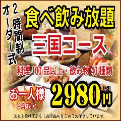 本格中華が気軽に味わえる『中華居酒屋 三国の宴』 ★☆大人気食べ飲み放題コース2,980円(税別)☆★ 2時間制・料理メニュー116種類食べ放題&ドリンク46種類飲み放題!! おつまみから海鮮、豚、牛、野菜…と がっつりお食事に良し、サクッと飲みに良し!なメニューを豊富に取り揃えております。...View More »