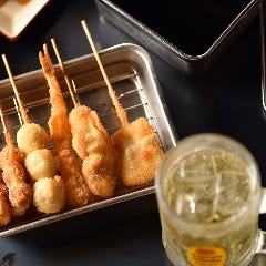 ◆生ビール含む120分飲み放題付き宴会コース おでんや串カツなどの人気メニューが楽しめるご宴会コースも各種ございます。 当日OKのコースもございますので急なご宴会もお任せ下さい! また、単品飲み放題も90分から150分までリーズナブルな価格で楽しめます。 ◆揚げたてサクサクの串カツ 鶏ももから...View More »