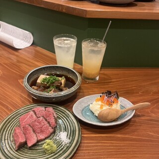 【当店のこだわり】 ・原始焼き【究極の焼魚】 炭火でじっくりと焼く昔ながらの調理法です。 逆さに立てた鮮魚は余分な水分が流れ落ち、魚自身の脂で表面はパリッと香ばしく中はふんわりとジューシー ・京都熟成和牛 上品な和牛香と、独特の甘み、柔らかくきめが細かい肉質が特徴的 丹精込めて生産された上質な...View More »