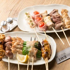 宮崎地鶏を使用した鶏料理と、豊富な居酒屋メニュー☆ ~炭火焼鳥103~ ☆炭火×宮崎地鶏 噛みしめる度に、口の中一杯に広がる肉汁と旨味! 炭火で丁寧に焼く職人技をご堪能ください♪ ☆アンティーク空間 アメリカの古材を使用した、シックで落ち着いた空間は、 メインフロアの掘りごたつ半個室・カウン...View More »