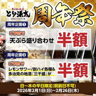 ★★★☆☆3.14 ■【個室有】2月の日~木は周年祭◎天ぷら盛り半額&サワーや地酒”三千盛”も半額♪※要予約 ■予算(夜):¥3,000~¥3,999View More »