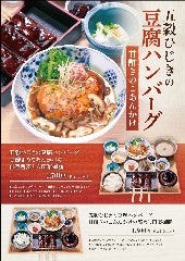 【期間限定】豆腐と五穀ひじきのハンバーグのフェアがスタート! 当店人気の菜めし田楽定食をはじめ、 自然薯とろろ田楽定食、彩り田楽定食と いろいろな定食がございます。 定食には色とりどりの小鉢付き♪ ヘルシーな菜めし田楽と豆腐料理をお楽しみください。View More »