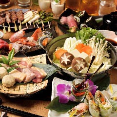 近鉄 津駅 徒歩1分。ワンランク上の寛ぎ空間で味わう極上鶏料理 鳥取直送のジューシーな旨み溢れる大山どりと 松阪牛専門店「朝日屋」直営店だからこそ味わえる良質な松阪牛、 選び抜いた上質素材で彩る多彩な逸品をたっぷりとお愉しみください ■宴会(飲み放題付) 串&とり鍋のコース 全5品 5,000...View More »