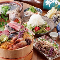 期間限定!6名様以上で対象コースをご予約いただくとお得に♪ ◆全国から厳選する魚介 高知、北海道、愛媛、宮城など…プロの目利きにかなった鮮魚を仕入れ 「お刺身盛り合わせ」や「ひとくち手巻き」がおすすめ! ◆飲み放題付コース 人気No,1!「6,000円コース」はお刺身はもちろん、旬魚の煮付け...View More »