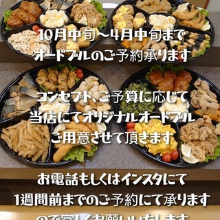 【テイクアウト】 お弁当・おでん・おばんざいアラカルトもご用意しております。 【デリバリー】 向日町~長岡京~大山崎への配達もお店の段取りで可能な場合がございます。 お断りする場合もございますが、是非ご相談ください。 ★テイクアウト・デリバリーともお好みのおばんざいでおまとめすることも可能です...View More »