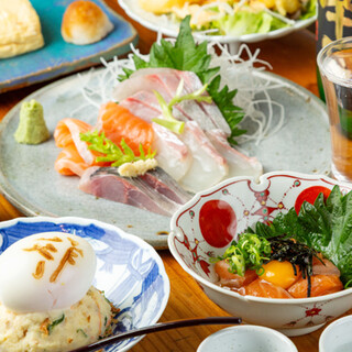 その日の仕入れによって替わる、 新鮮な海の幸・山の幸が満載のメニューでお待ちしております♪ 店内はシックな大人の空間で、ゆったりとお料理&お酒が楽しめます。 おすすめ宴会は、どのコースも2時間の飲み放題込みで 旬の素材を使った5,000円のコースからご予算に応じて対応いたします。 10~20...View More »
