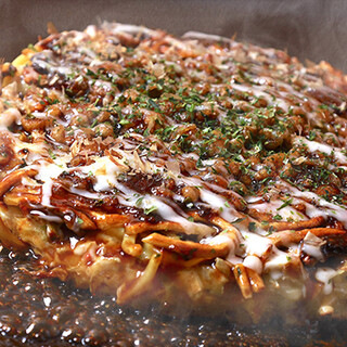 当店自慢!ボリューム満点!葉づきスペシャル! 豚・いか・えび・すじこん・油かす・大葉・ねぎなどの具材をふんだんに使ったお好み焼き! その名も『葉づきスペシャル』!! 通常のお好み焼きより1.5倍サイズでボリューム満点! 2時間飲み放題付き宴会コース税込4500円〜ご用意しております。 (3名様...View More »