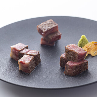 北新地にあるステーキとワインのお店「シュバルージュ」産地を限定せず、その時々で最高の和牛を鉄板焼きでお愉しみいただけます。View More »