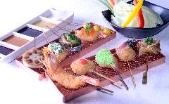 ルクアイーレ10階にある串料理店です。旬の海鮮・野菜等、四季折々の食材や定番の海老・アスパラガスはもちろん、 食材を組み合わせたオリジナリティ溢れる串をバラエティ豊かに楽しめます。 目の前で職人が揚げる、臨場感あるカウンター席やテーブル席もご用意しており、お一人様・ファミリー・接待等、様々なシ...View More »