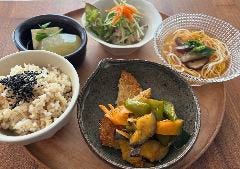 ◆自然派メニューが勢ぞろい 旬の新鮮野菜を使用し栄養バランスを考えたおかずと、 奈良県産ひのひかりが味わえる【ごはん定食】は必見♪ 週替わりでメニューが変わり、お値段もリーズナブル◎ 毎週通いたくなる美味しさです! そのほかにも、ボリューム感のある鶏もも肉が入った スパイシーな骨付きチキンスー...View More »