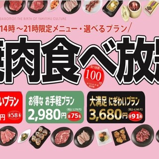 ★★★☆☆3.14 ■【焼肉食べ放題プラン】14時~! わいわいプラン 2,508円税込。100分制(LO30分前) ■予算(夜):¥3,000~¥3,999View More »