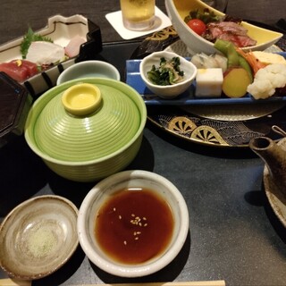 【職人こだわりの和食と完全個室】 完全個室の和モダン空間で、接待・会食・大切な会合に最適なダイニング。 旬の山海の幸を使用した和食を味わう2時間飲み放題付コースを4000円(税込)から提供。 焼き・炙りの逸品やお野菜の小皿料理等、四季の和食が楽しめます。 落ち着いた空間と豊富な銘酒で、ビジネス...View More »