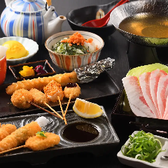 ◆宴会コース(お昼もOK!) 多彩な串揚げや黒豚せいろ蒸し・しゃぶしゃぶなど品数豊富な宴会コース! 飲み放題付きコースは4800円~ご用意♪ 15名様~22名様までの1階貸切も気軽にご相談ください。 ◆名物串揚げ/しゃぶしゃぶ ・上品な味わい造作串揚げ。 ・お出汁で食べる黒豚しゃぶしゃぶは絶品...View More »