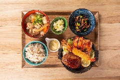 ◆アツアツ・ほくほく・サクサクが嬉しい 「元気定食」は野菜・海鮮・豚肉の天ぷらが楽しめる人気メニュー◎ イカの塩辛やご飯もセットで、ボリューム満点! 特製の「もつ鍋」は九州醤油をブレンドしたスープが特徴で、 もつの旨みとニラやキャベツの甘みが溶け出した極上の一品。 ◆天ぷらが手招く昼飲みの誘惑...View More »